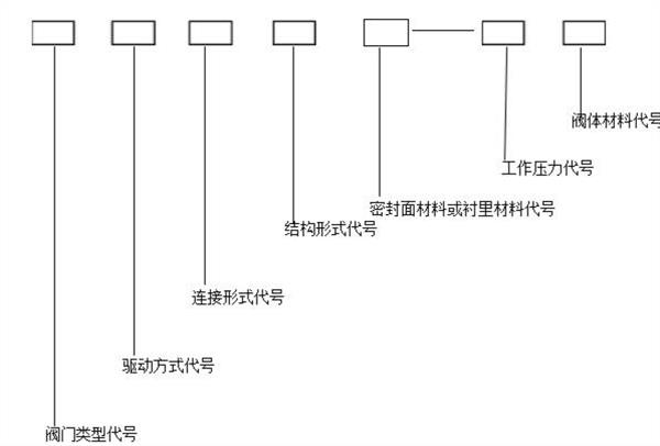 閥門型號(hào)由閥門類型、驅(qū)動(dòng)方式、連接形式、結(jié)構(gòu)形式、密封面材料或襯里材料類型、壓力代號(hào)或工作溫度下的工作壓力、閥體材料七部分組成。