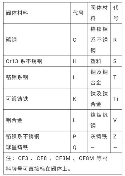 f、閥體材料代號(hào)用阿拉伯字母表示,如圖