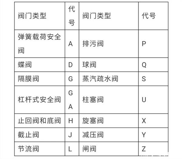 a、閥門類型代號(hào)用漢語拼音字母表示,如圖