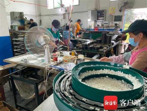 當(dāng)?shù)鼐用裨诂樚伶?zhèn)一家電子陶瓷廠(chǎng)內(nèi)工作。記者 張宏波 攝