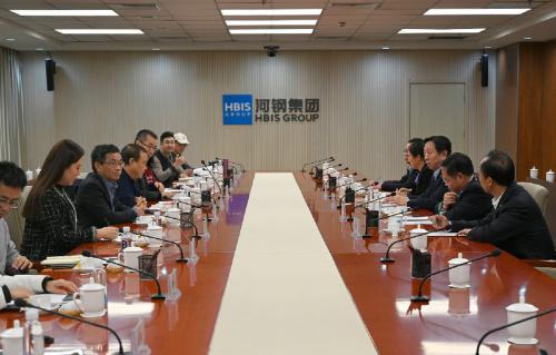 集團領(lǐng)導(dǎo)齊躍章,中國冶金報社副社長、黨委委員熊余平參加會見。