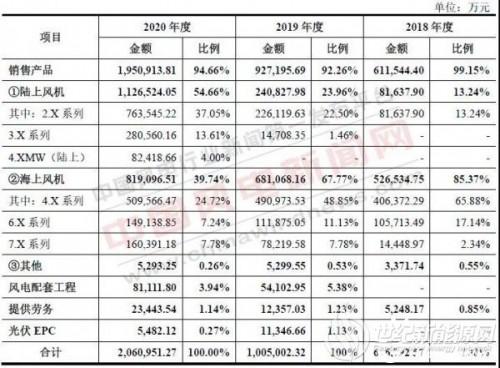公司產品覆蓋 1.25MW 到 8MW 全系列風電機組,基本實現(xiàn)了全功率覆蓋。產品按應用場景主要可分為陸上風電機組與海上風電機組。其中, 報告期內形成銷售收入的陸上風電機組主要包括 2.X 系列、 3.X 系列、4.0MW (陸上) ;海上風電機組主要包括 4.X 系列、 6.X系列、 7. X系列。同時,公司也在陸上4.X系列、5.X系列與海上5.X 系列、8.0MW 系列進行積極的產品研發(fā)與布局。
